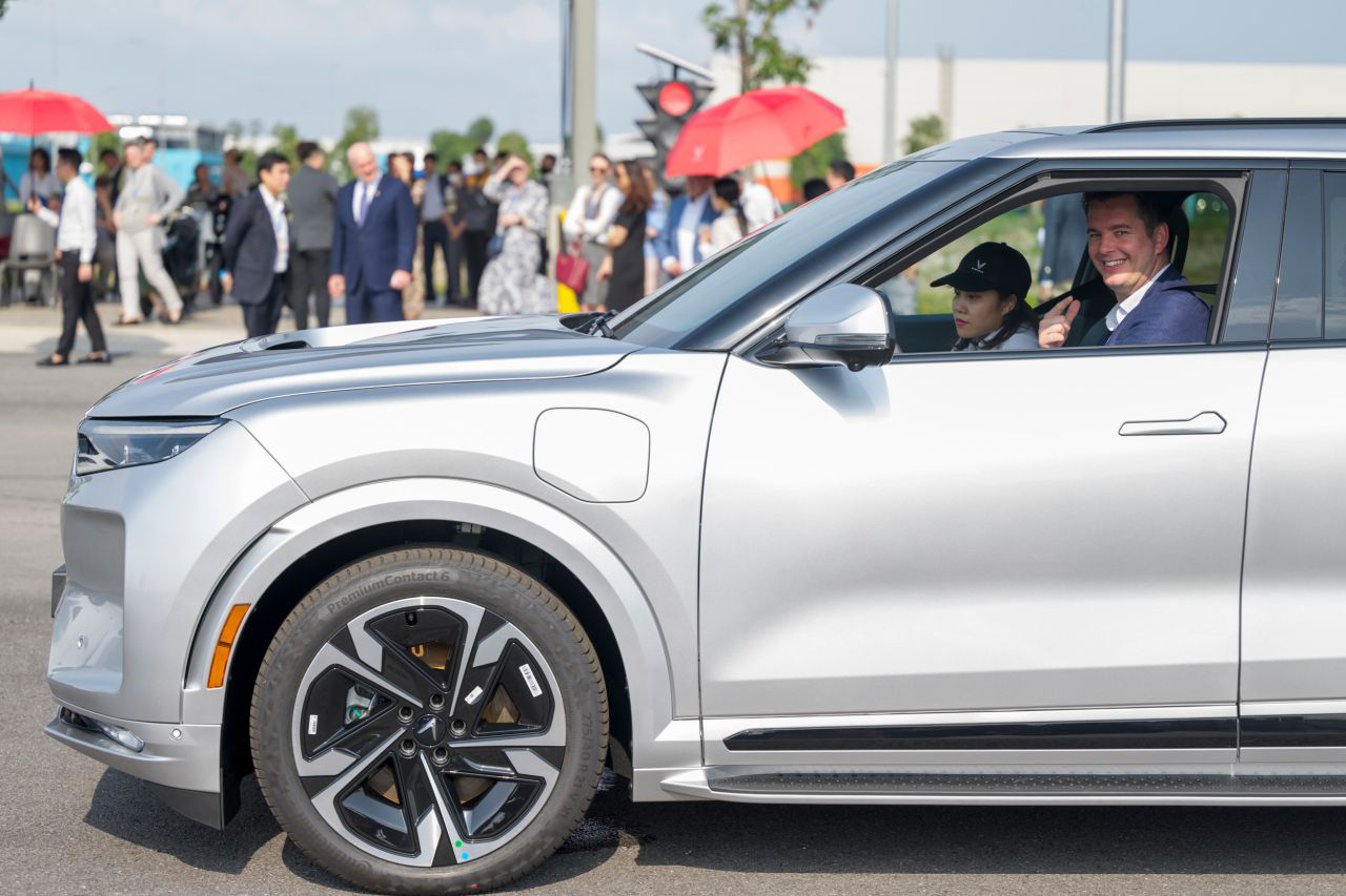 Bộ trưởng Luxembourg thử lái xe điện VinFast - Ảnh: Chính phủ Luxembourg